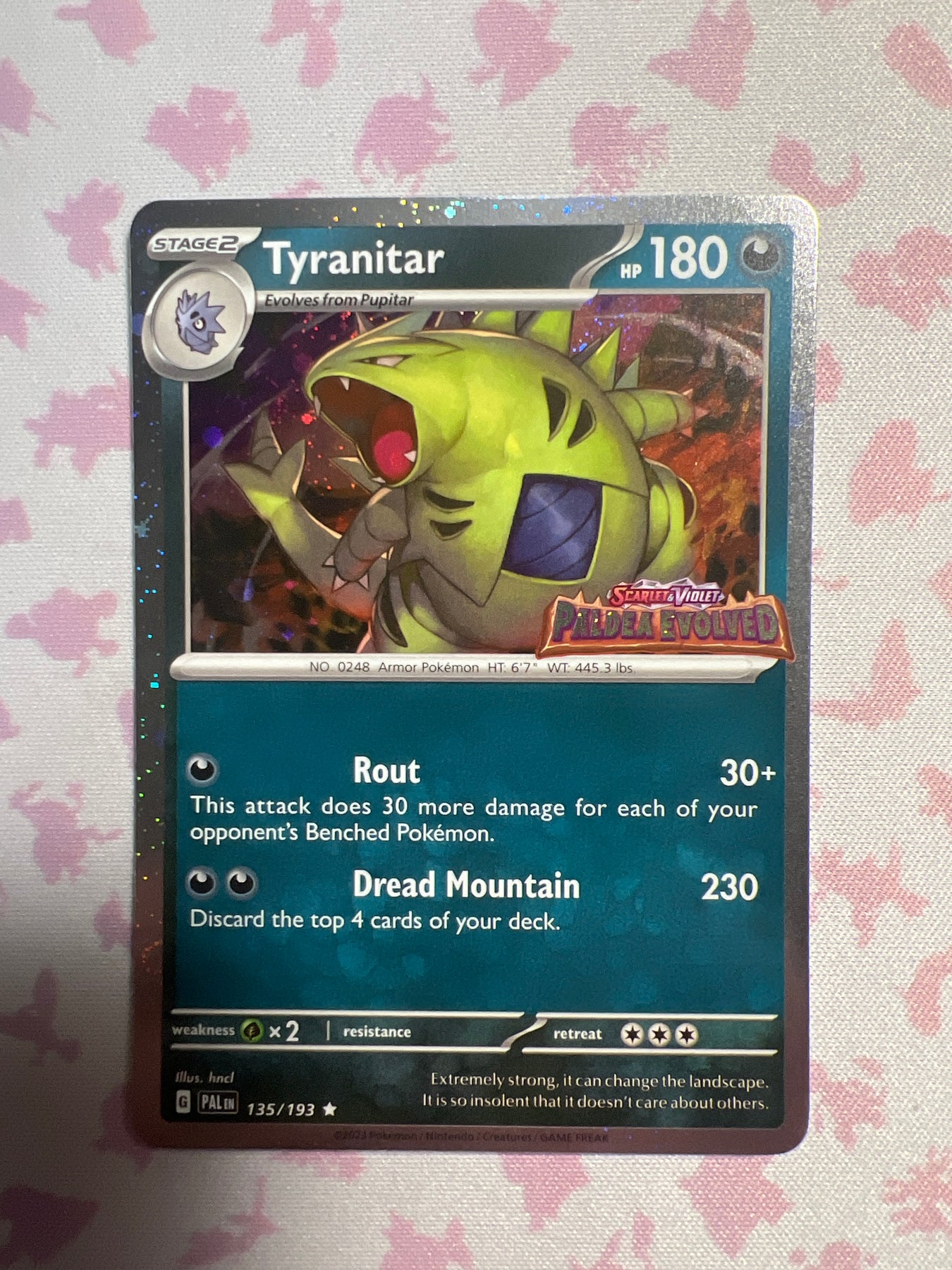 Complete your collection with Tyranitar - Paldea Evolved 135/193 - Stamped Promo - (2023) (NM)! Don't spend more money on booster packs - get your chase card now. This is a great way to get your chase card raw without having to pay the premiums of graded cards. See photos for condition and message for details! Gotta catch 'em all!