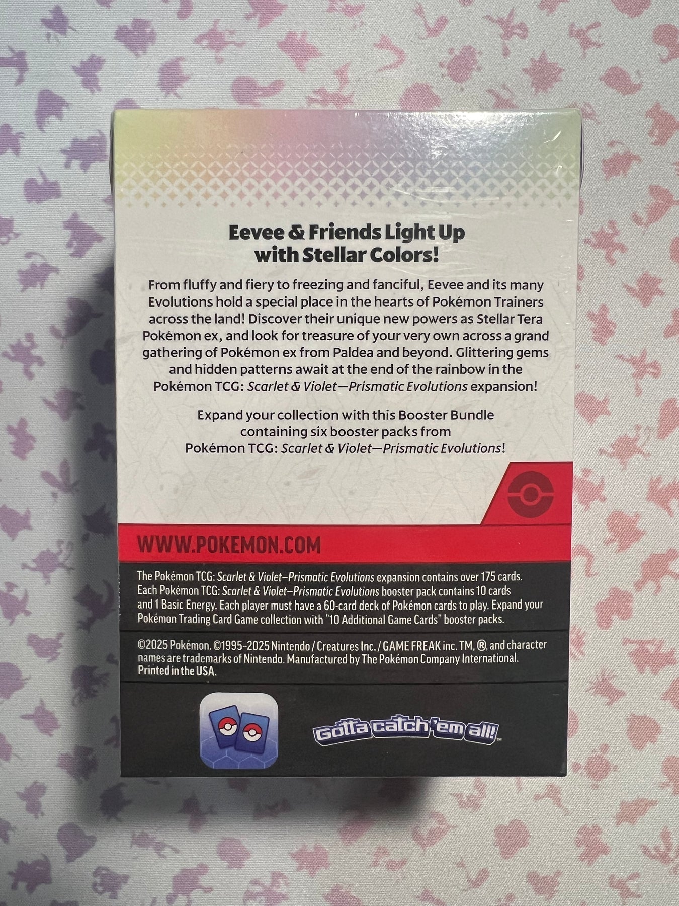 Factory Sealed Pokémon Scarlet & Violet Prismatic Evolutions Booster Bundle. Includes (6) Booster Packs.